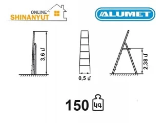 Աստիճան / Ալյումինե աստիճաններ / Աստիճան կողքերից բռնակներով ALUMET APE1409